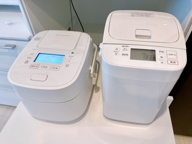 暗めのキッチンや限られたスペースには、白い家電を置くと光を反射して明るく、広く見せる効果があります。