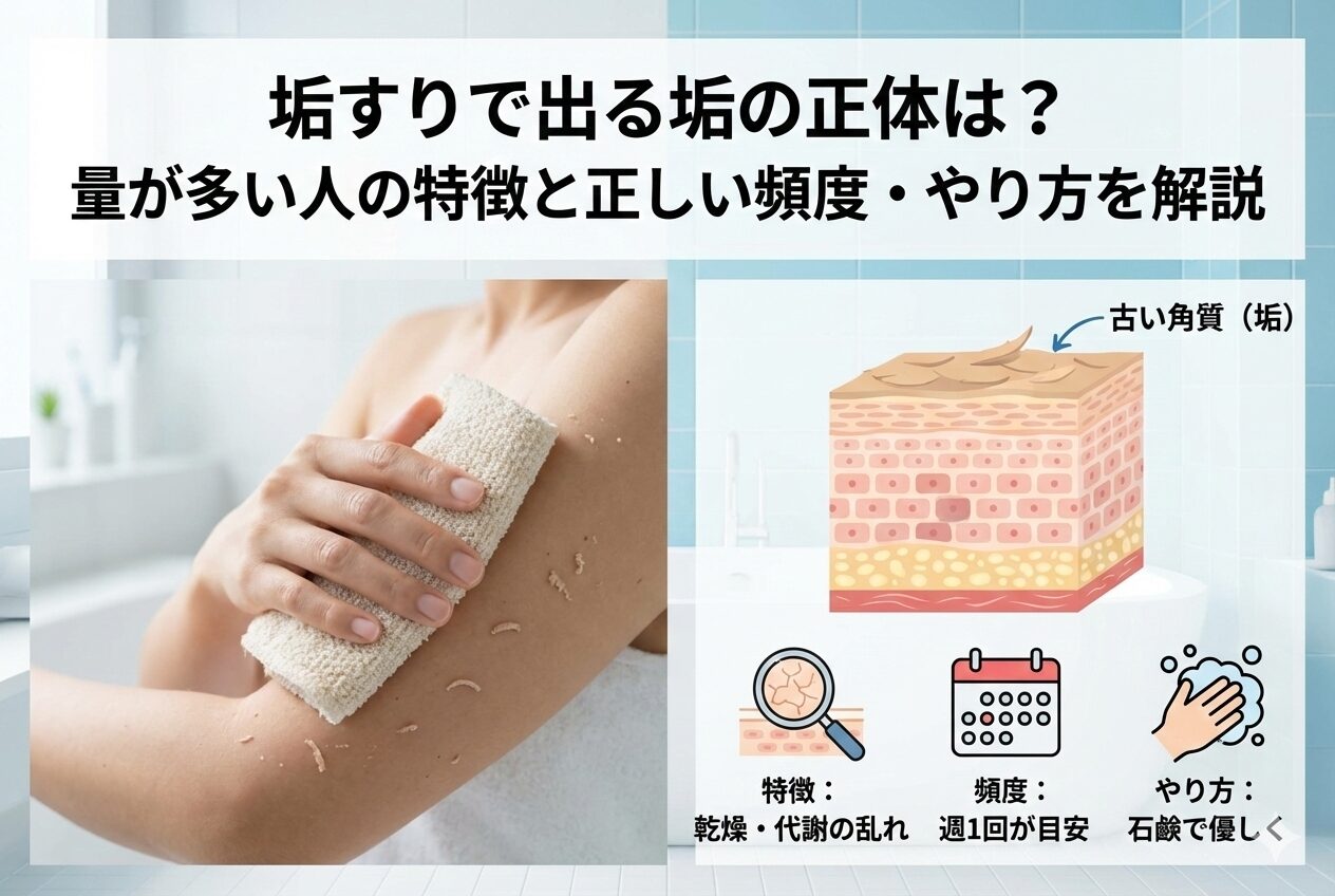 この記事では、垢すりで出る「垢の正体」を科学的な視点で解説し、垢が出やすい人の特徴や、肌を傷つけずにツルツルにする正しい垢すりの方法をご紹介します。正しい知識を身につけて、自信を持ってボディケアを行いましょう。