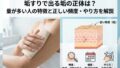 - コツ: 事前に湯船に15分以上浸かり、皮膚を十分にふやかすこと。そして、石鹸をつけずに優しくこすることです。赤くなるまでこするのは厳禁です。