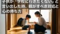 - 子供自身が「行きたくない」と強く訴える場合: 登園・登校しぶり、腹痛や頭痛などの身体症状が出ている。