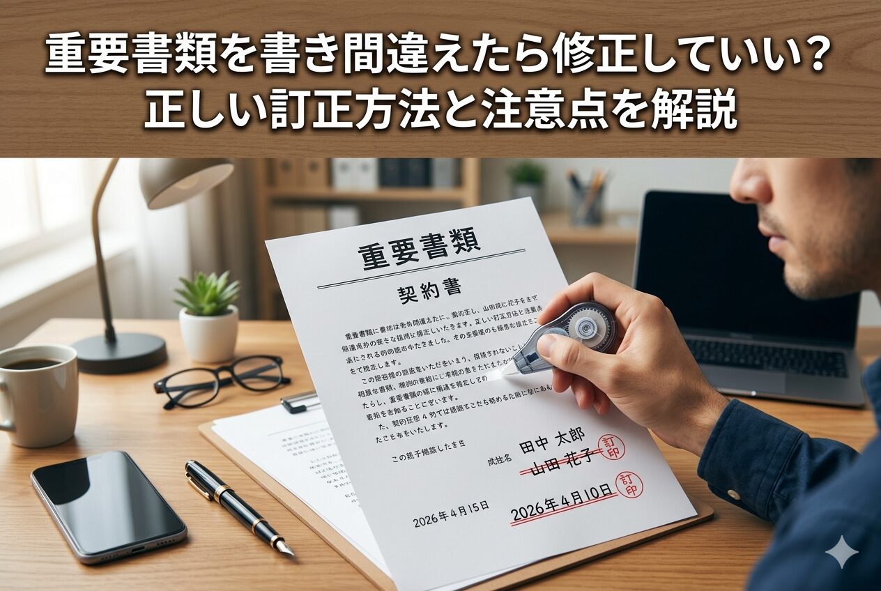 ご安心ください。ほとんどの書類は、正しい手順を踏めば適切に修正することが可能です。しかし、修正方法を間違えると、書類が無効になったり、再提出を求められたりするリスクもあります。